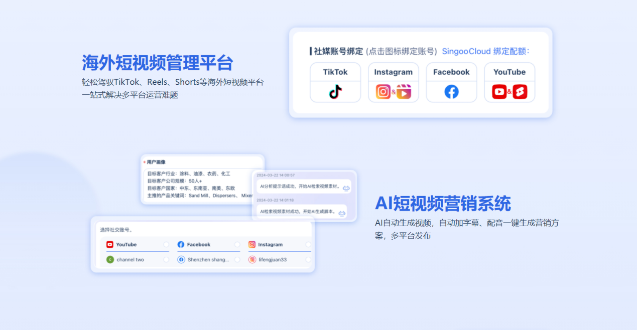 星智出海聚焦出海企业 “获客难、转化低、管理散” 核心痛点,以人工智能与大数据分析为核心,构建 “精准获客 - 智能转化 - 高效管理” 全链路营销体系。在短视频运营领域,通过 AI 技术优化内容创作与投放策略,精准触达海外目标客群,助力企业在 TikTok、Instagram Reels 等平台快速建立品牌认知,打破传统营销模式局限,为全球化竞争提供数字化支撑。